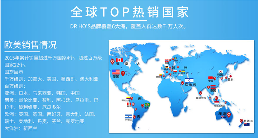 作為一個海外品牌,何浩明DR-HO’S暢銷于美國、加拿大,馬來西亞,阿根廷,英國等超過30個國家和地區(qū),其中有一半以上年銷售額都破千萬。一直以來, DR-HO’S都主張原創(chuàng)設(shè)計、自助創(chuàng)新,并且在亞洲、北美擁有兩個研發(fā)基地,每年都會推出讓人眼前一亮的新品。
