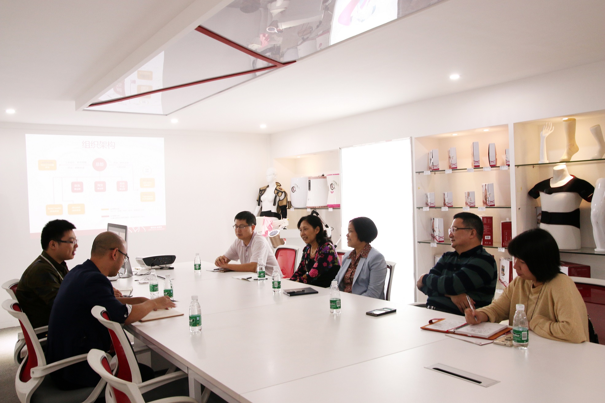 章總向范副主席一行領導匯報了紐得賽科技過去幾年在創新創業工作上的各項嘗試成果及公司良好的生產經營情況。自主品牌“科愛元素”推出以來,倍受消費者關注好評,成為了醫療保健市場的新起之秀;秉承工匠精神,堅持研發創新,不斷更新迭代為社會提供更好的產品;在市場拓展方面,步步推進,穩打穩扎;公司重視人才培養,注重分享學習,管理團隊多年來一直保持穩定。