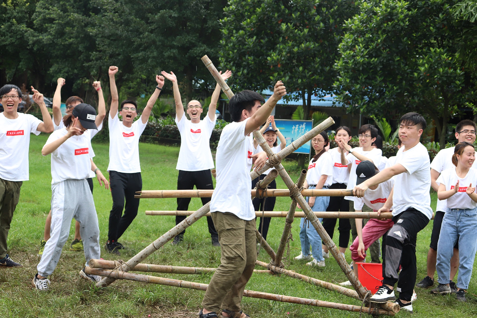 活動當天,雖然正值炎熱夏天,但是紐得賽人的興奮之情絲毫沒有減弱,全體員工準時到達了約定集合地方,乘坐公司車輛前往陽光歡樂谷。到達地點后,拓展活動正式開始。公司組織了很多有趣好玩,訓練團隊精神的游戲,如急速速遞,永不停息,竹筏競速等游戲。大家分成幾個團隊,團隊之間既有針鋒相對的競爭,也有溫馨的互相加油,在融洽的游戲氛圍中,大家完成了一個又一個任務。
