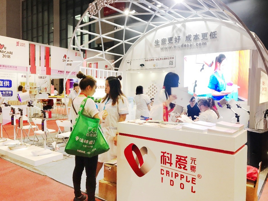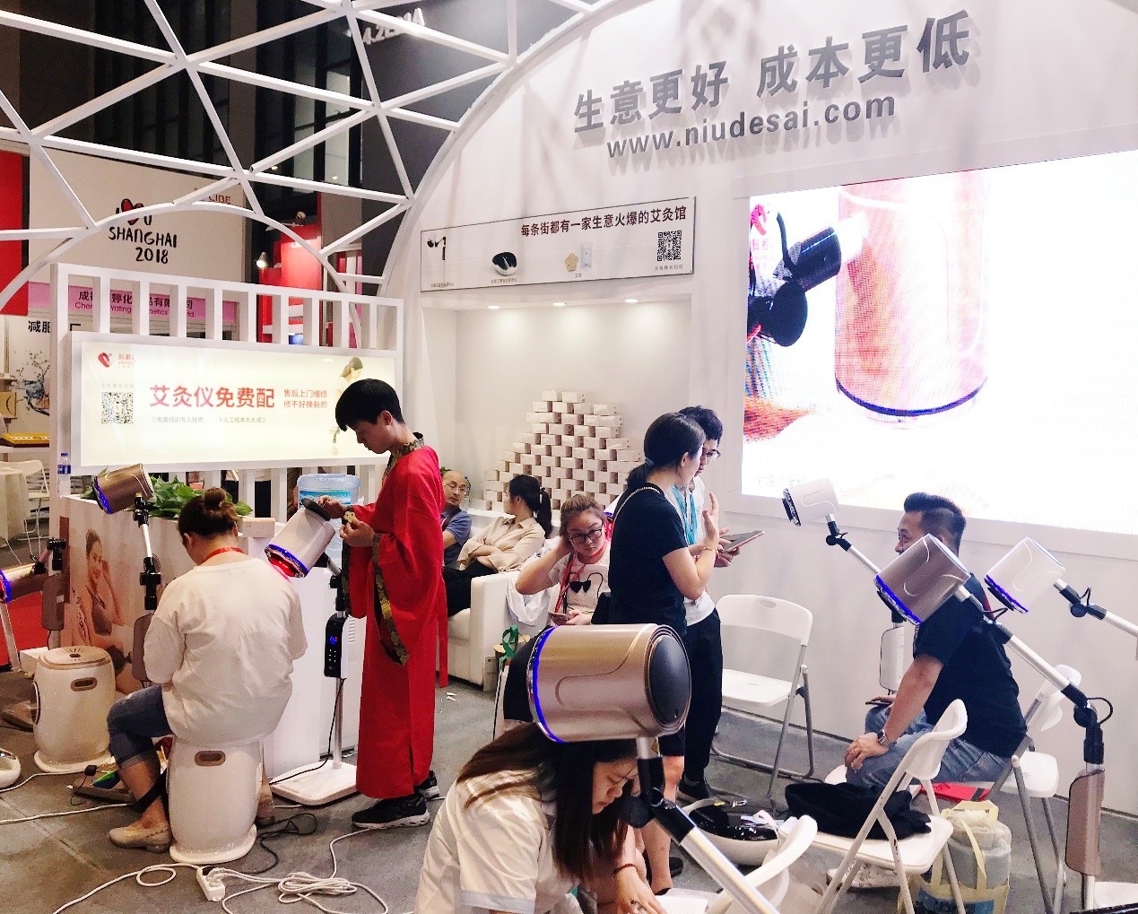 本次美博會,紐得賽旗下的“科愛元素”品牌攜麾下王牌產品參展,時尚的展位造型在眾多展位中獨樹一幟,吸引了無數觀展商的眼球,同時誘人的參展主題“3塊錢開艾灸項目,艾灸儀免費配”更是讓參展商們迫不及待的進場咨詢起詳細活動細則。