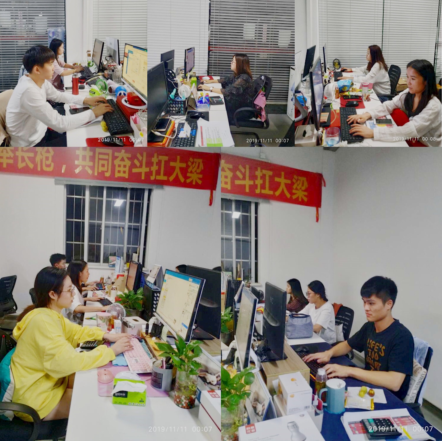 11月11日零點(diǎn)一到,紐得賽旗下不同品牌的店鋪都迎來了絡(luò)繹不絕的訂單,辦公室里回蕩著此起彼伏的鍵盤啪啪聲。凌晨0點(diǎn)到2點(diǎn)是雙十一活動的第一個爆發(fā)點(diǎn),這時候是客服部門最忙的時候,他們保持著高漲的工作狀態(tài),不敢有絲毫懈怠,積極與顧客溝通,做好訂單的審核。