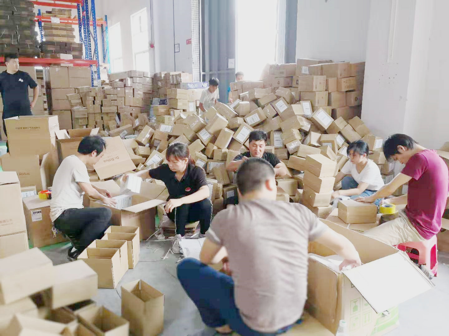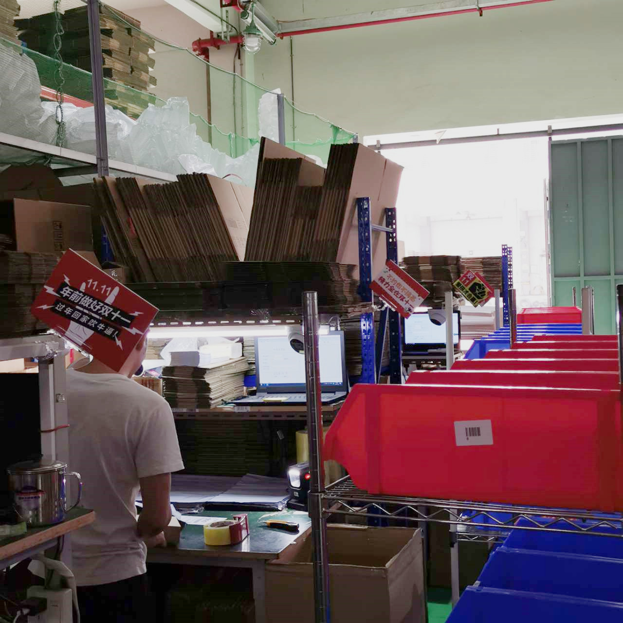 與此同時,倉庫工作也在緊張有序進(jìn)行著,按訂單順序打單,按單揀選,打包貨品,貼單,掃描,裝箱……每個環(huán)節(jié)緊緊相扣,有條不紊。